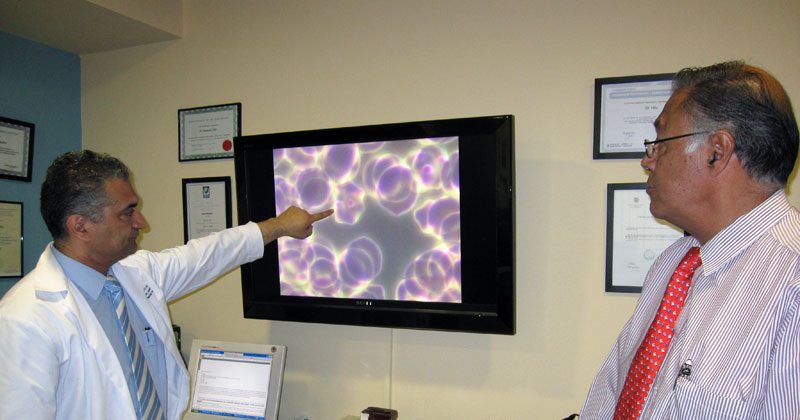Recogida una muestra de sangre antes del tratamiento Biomagnético y otra después para así comprobar con el microscopio de campo oscuro si los microorganismos responsables de sus patologías, ya no estaban realmente presentes en la sangre después de los tratamientos.